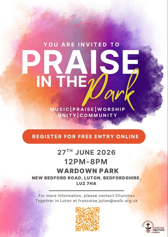 This event will be an opportunity for churches across Luton to come together in worship, fellowship, and shared mission. The day will feature music, praise, and worship in the open air, and we warmly invite every church to participate.