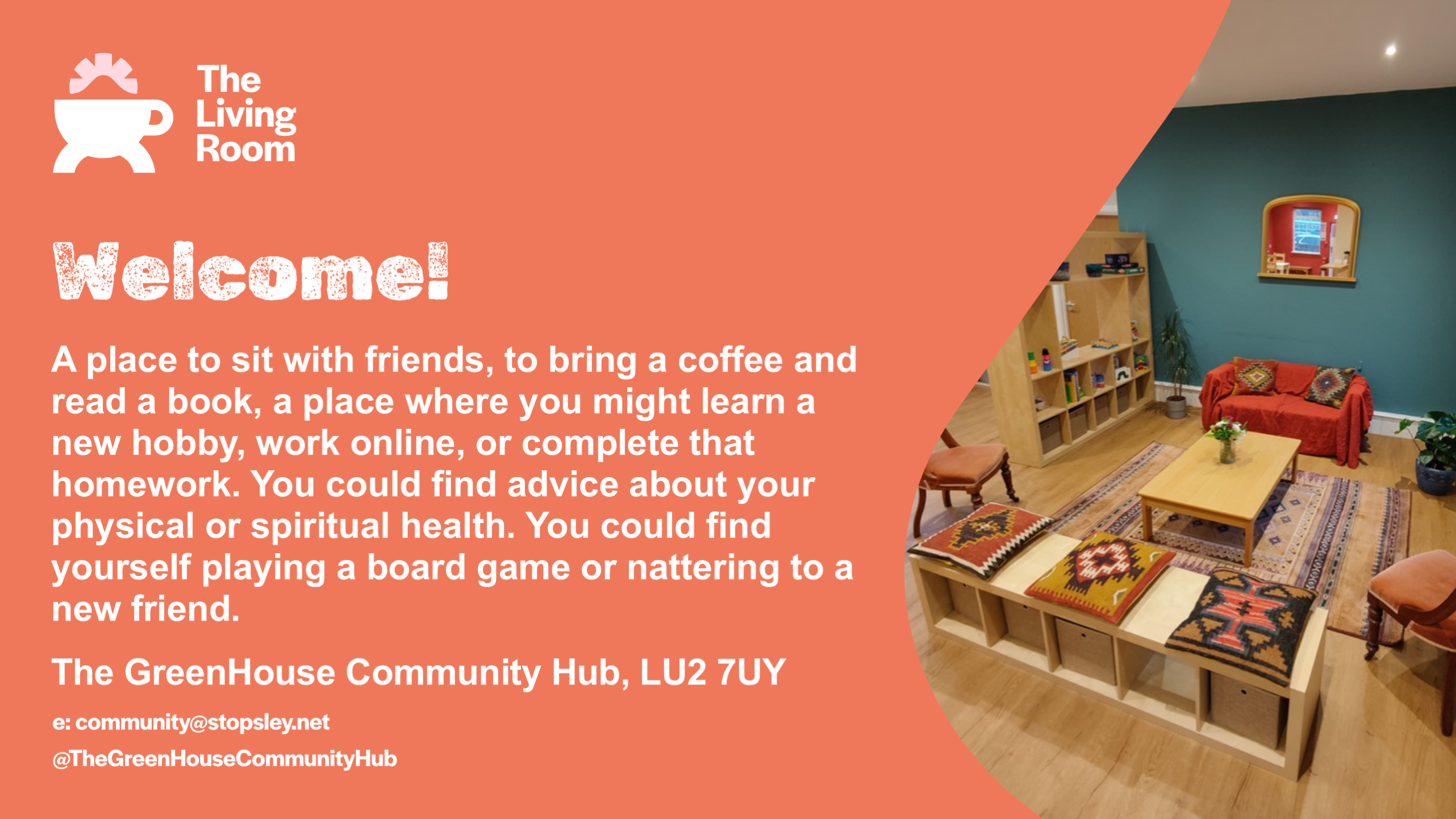 The Living Room has new opening hours. Come by and make yourself at home. You can relax and chat with others, or just sit back and read. How you spend your time here is up to you. Everyone is welcome!